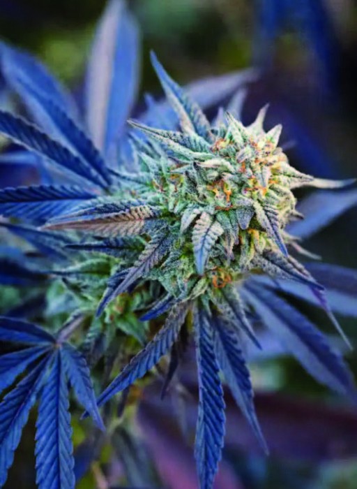 Appearance: Dense and resinous flowers with blue, purple, and orange colors