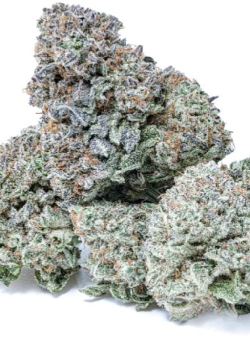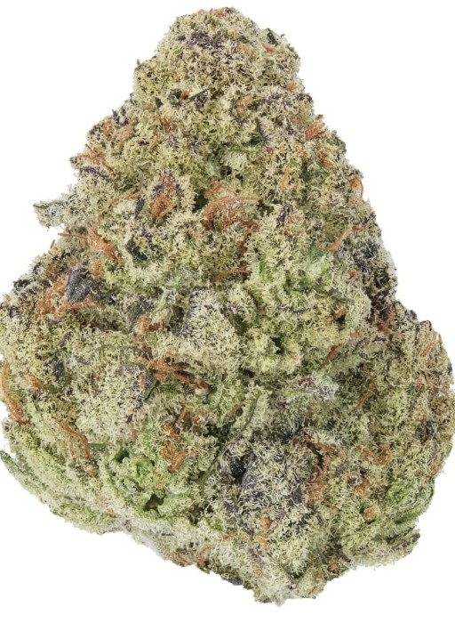 - Appearance: Dense buds with green and purple tones, frosty trichomes
