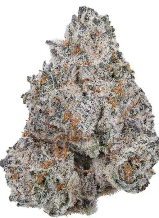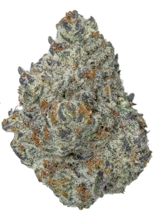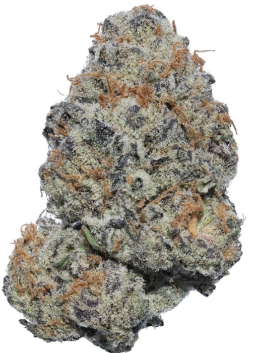 - Appearance: Frosty, trichome-covered buds with purple and green tones